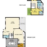 Downstairs, light filled living room, spacious kitchen meals, both with access to central leafy courtyard extending your living areas.
