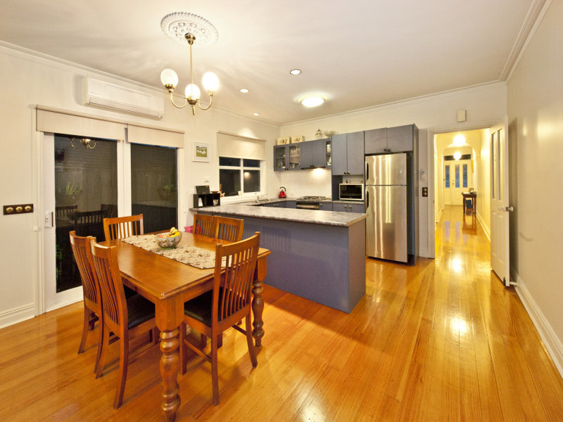 Wider than most, this terrace house certainly ticks all the boxes in terms of location and space. The open plan floor plan compliments the large footprint of the house on the generous single fronted allotment. Only a few minutes walk to city transport, schools, parks and all that Nicholson Village has to offer. Set back offering off street car accommodation at the front, the property comprises a glamorous wide entrance hall servicing the 2 Bedrooms both with robes and the centrally located bathroom with European style laundry before opening up into the massive open plan kitchen / dining and lounge area. The oversized kitchen with huge U shaped bench will appease any type of chef from beginner to master. Double sliding doors from the living room open up to the concrete courtyard, designed perfectly for outdoor living and entertaining. A large list of features include: perfectly polished boards, central heating, gas fire place, split system air-conditioning, and much much more.