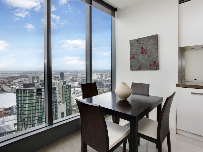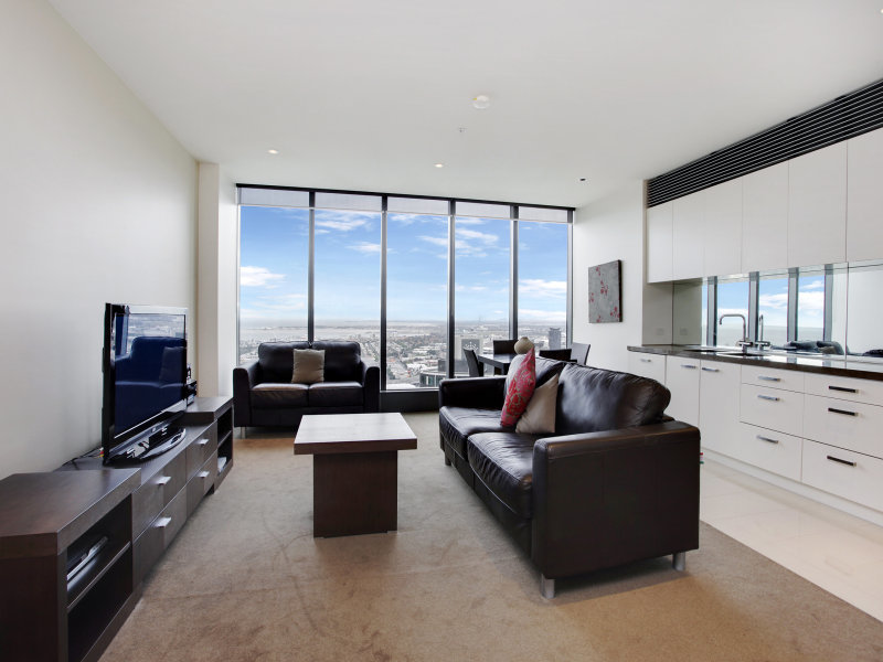 Luxuriously appointed, one bedroom apartment available with impressive views across to the bay. Comprising large open plan living area, kitchen with smeg stainless steel appliances and stone benchtops, Bedroom with built in robes, bathroom with European laundry. You will also enjoy use of the facilities on level 40 including pool, gym, sauna and outdoor area, storage cage and single car space.