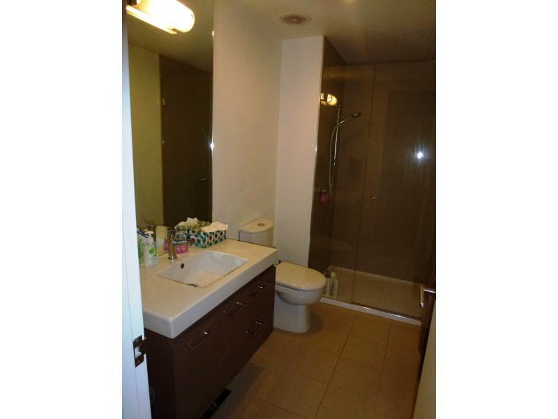 If your looking for something a little sharper than your usual square box than this large (51.2 sq mts plus 9.5 sq mts balcony),1 bedroom plus study apt will entice you. The minute you walk in, you will know this is the best of the best. Showcasing timber floorboards, large bedroom with bir, electric heater, large open plan spaces, plenty of storage area, great gas equipped kitchen with stainless steel appliances, split air con in lounge/dining area, ceasar stone bench, compact dishwasher, large beautifully tiled bathroom with vanity unit, w.c. and shower, European laundry, gas hot water service. Large balcony off lounge. Roof top verandah for entertaining. Totally secure with intercom system and carspace on title. Currently leased till May 2015.