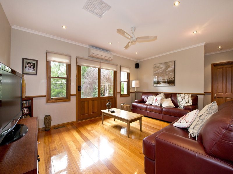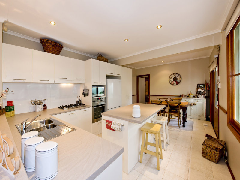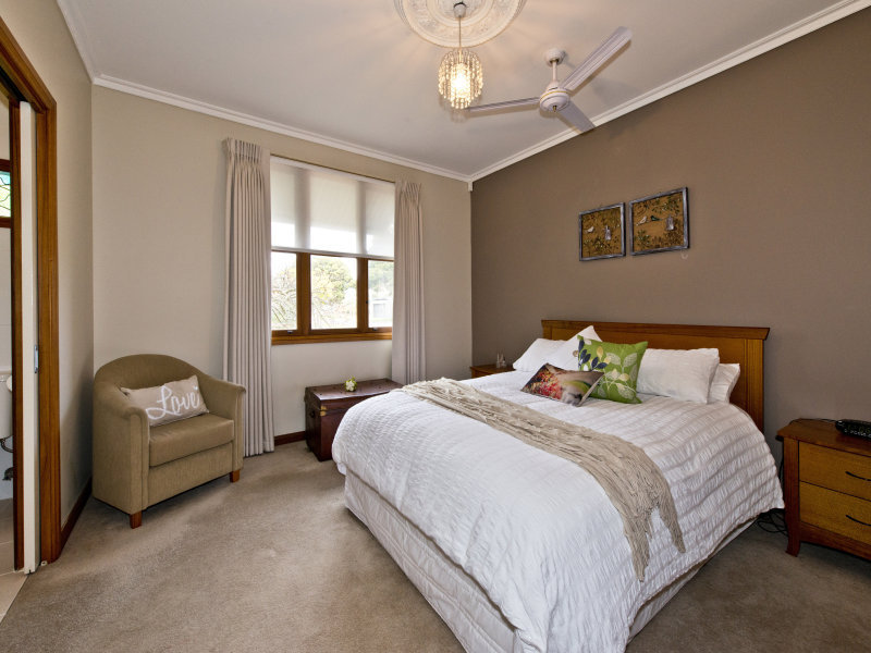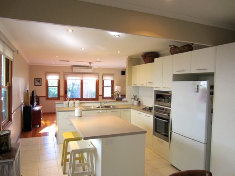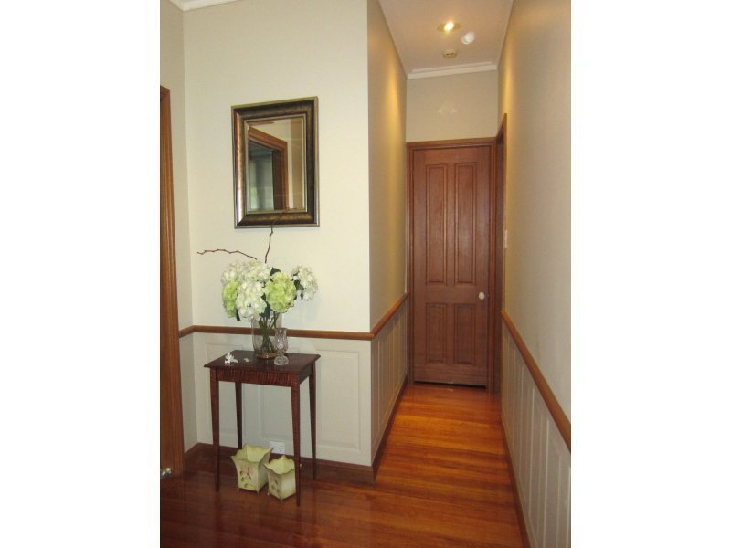 Sheltered by an ornate front verandah, the large welcoming hallway leads to an interior of 3 bedrooms, main with ensuite & WIR, study or 4th bed, 2 separate living areas, one with an open fireplace, which could easily be converted to another bedroom if required. A large modern kitchen with stainless steel appliances overlooks the light filled family room complete with surround sound system. Other features include modern laundry, 2 walk in storage rooms, ducted heating , evap cooling, split system air conditioner and alarm system.