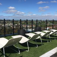 Level 6 Roof top Retreat with expansive indoor dining room and outdoor alfresco zone. It offers sun lounges, outdoor spas to soak up the Melbourne panorama and a golf putting green.