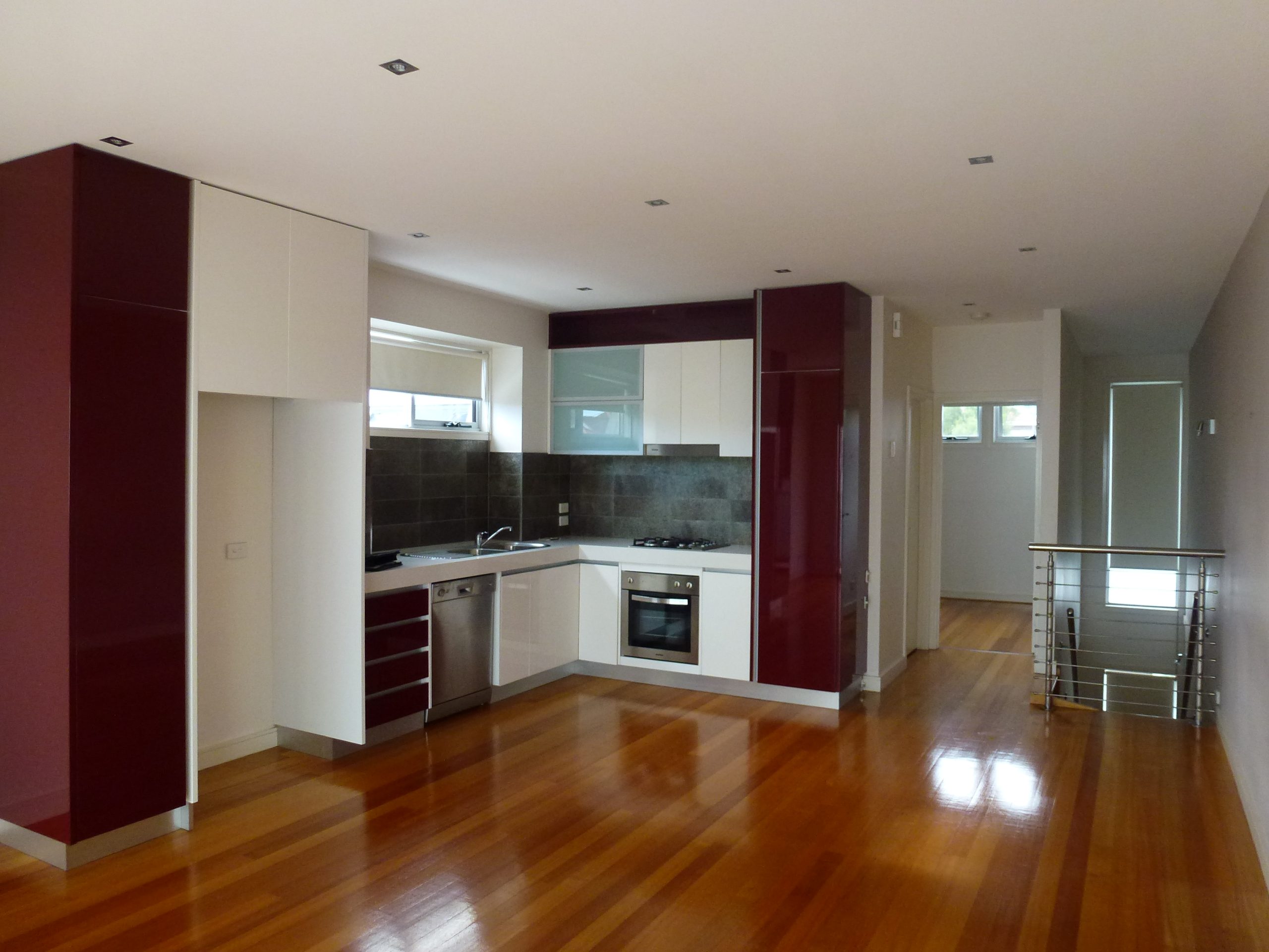 A well thought out floor-plan includes light filled open living space with polished parquetry floors, to a spacious balcony for sun lovers. An open plan kitchen featuring contemporary colour palette of red with efficient storage space, stainless steel appliances for convenience, a large spacious master bedroom with built in robes upstairs also has a well equipped ensuite.